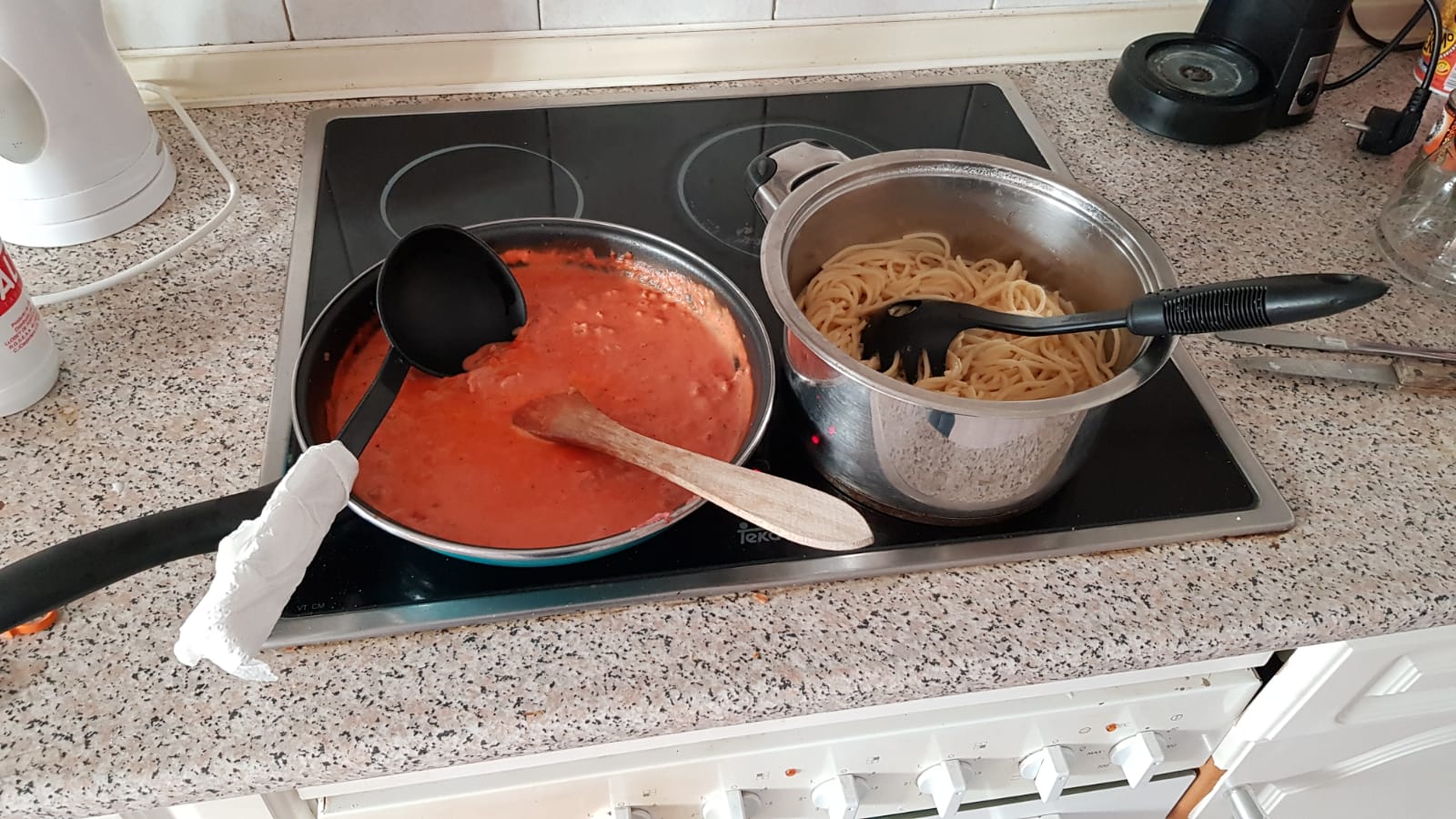 Later in the evening after work, Oona made spaghetti and I washed the dishes.