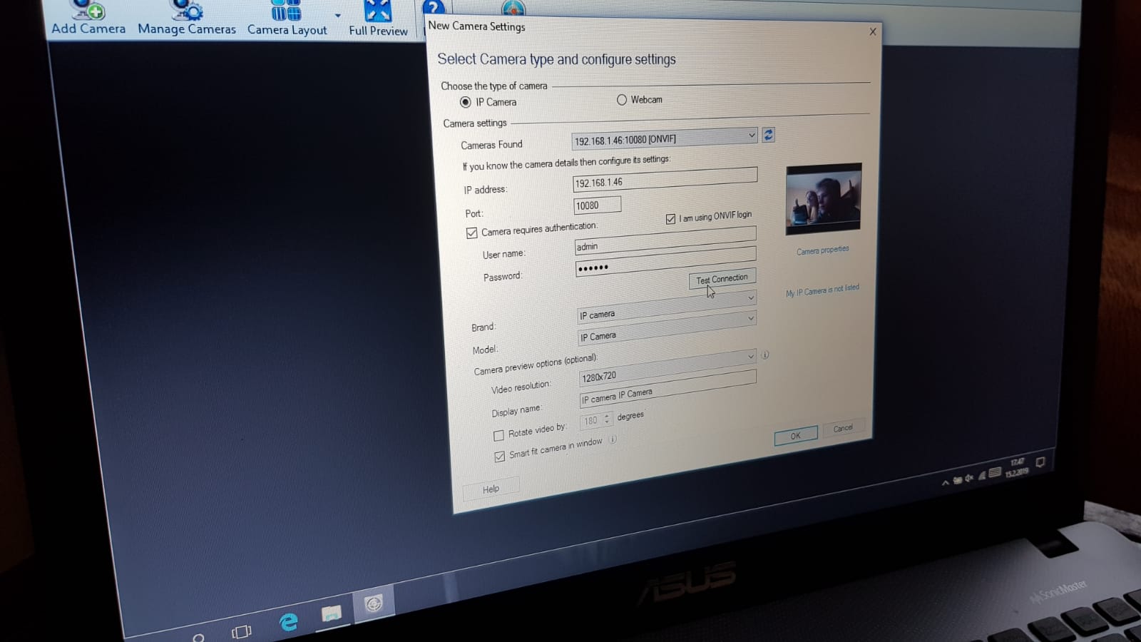 Until at 15:50 it finally hit me, we needed to use both IP and software that recognizes the cameras and login to them.
