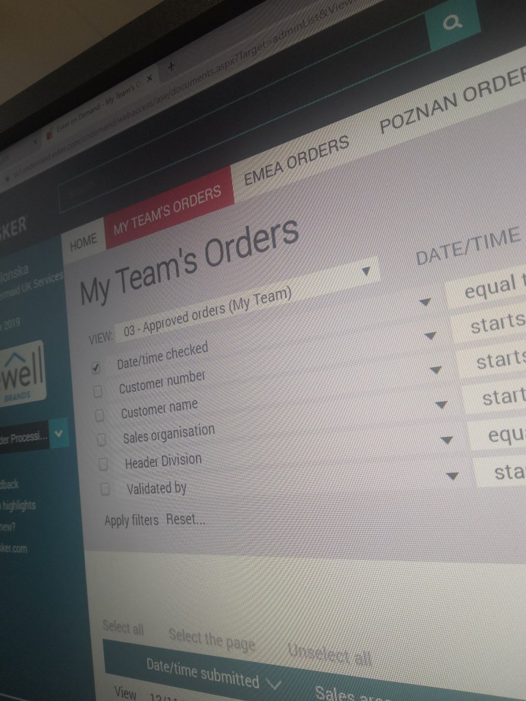 The programs that we use to create and deal with the orders are starting to feel familiar. We use this website called Esker to enter the orders to the system. First you have to forward the email with the order to Esker. Then Esker will either automatically create the order and feed it to the system or we do it manually. From Esker the orders go to SAP. If the order goes automatically from Esker to SAP we check it to be safe. SAP is our main tool. Everything that has to do for example with orders, customers and products you can find from SAP.