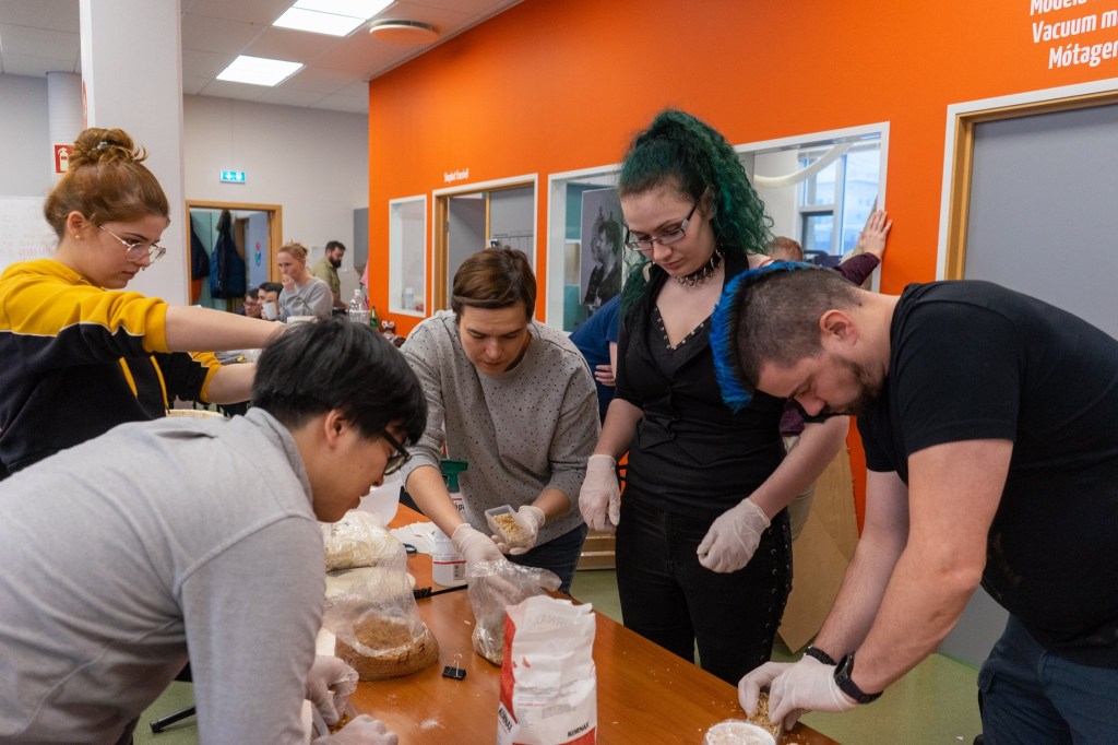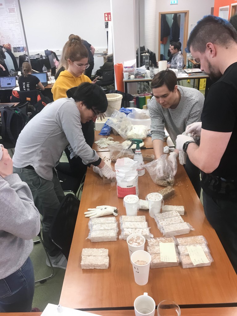 Hafey Viktoría Hallgrímsdóttir and Þóra Óskarsdóttir held a Mycelium workshop, how to make biodegradable “styrofoam”.