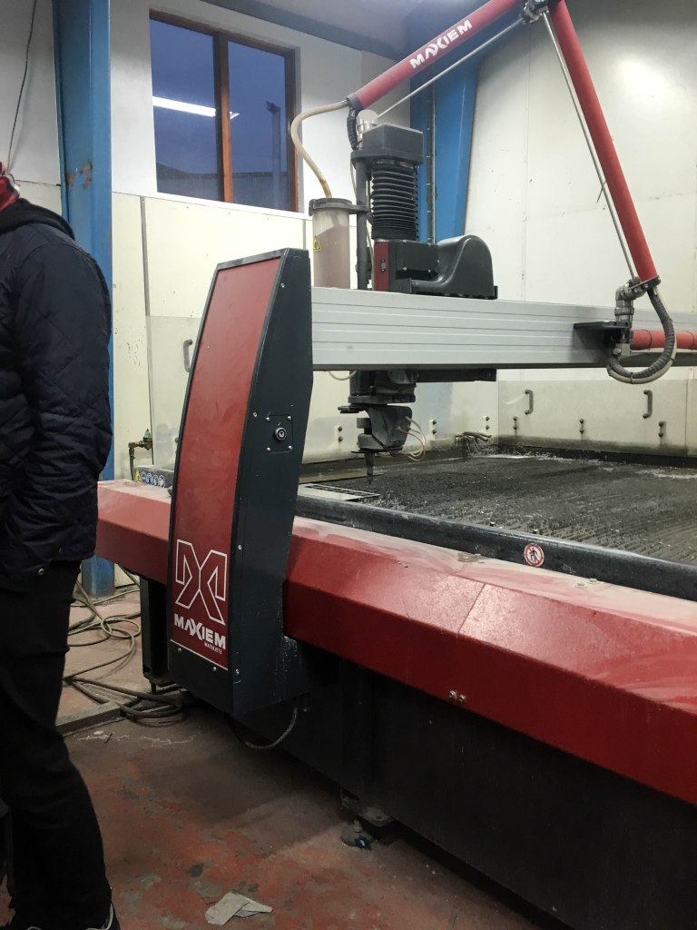 After that, we had a chance to see a local metal workshop Thor. There Sævald Hallgrímsson and Sigursteinn Marinósson showed us 5-axis water jet cutter, CNC lathe and CNC milling machines.