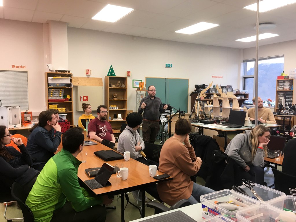 On the third day of the bootcamp, there was the annual meeting of the Nordic Fab Lab Network where the board was thanked for their job, and Jani Ylioja from Finland got special thanks as the chairperson. After this, Frosti Gislason from Iceland was elected as a new chairperson of the Nordic Fab Lab network for 2020. Other members of the board are from Denmark: Rasmus Fangel Vestergaard (vice Chairperson), from Sweden: Sam Edlund, from Norway: Haakon Karlsen, from Faroe Islands: Jóannes Djurhuus, from Finland: Jani Ylioja, from Greenland: Susanne Høegh.