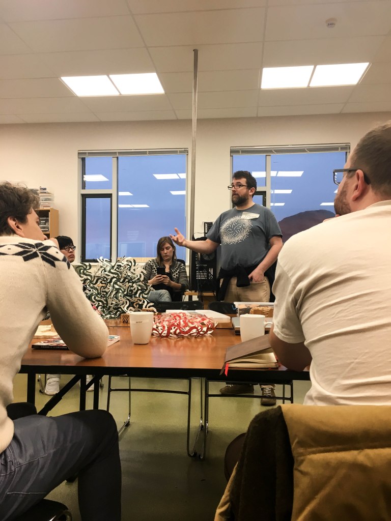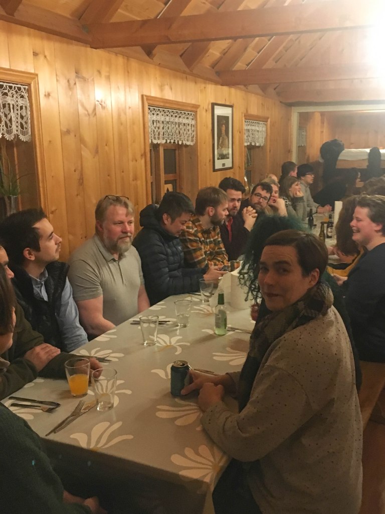 Thursday evening we all get together and had a dinner party in the scout cabin. The weather was still snowy, windy and cold, but inside the cabin we enjoyed good icelandic traditional food and of course the best company of our new friends from Fab Labs around the world.