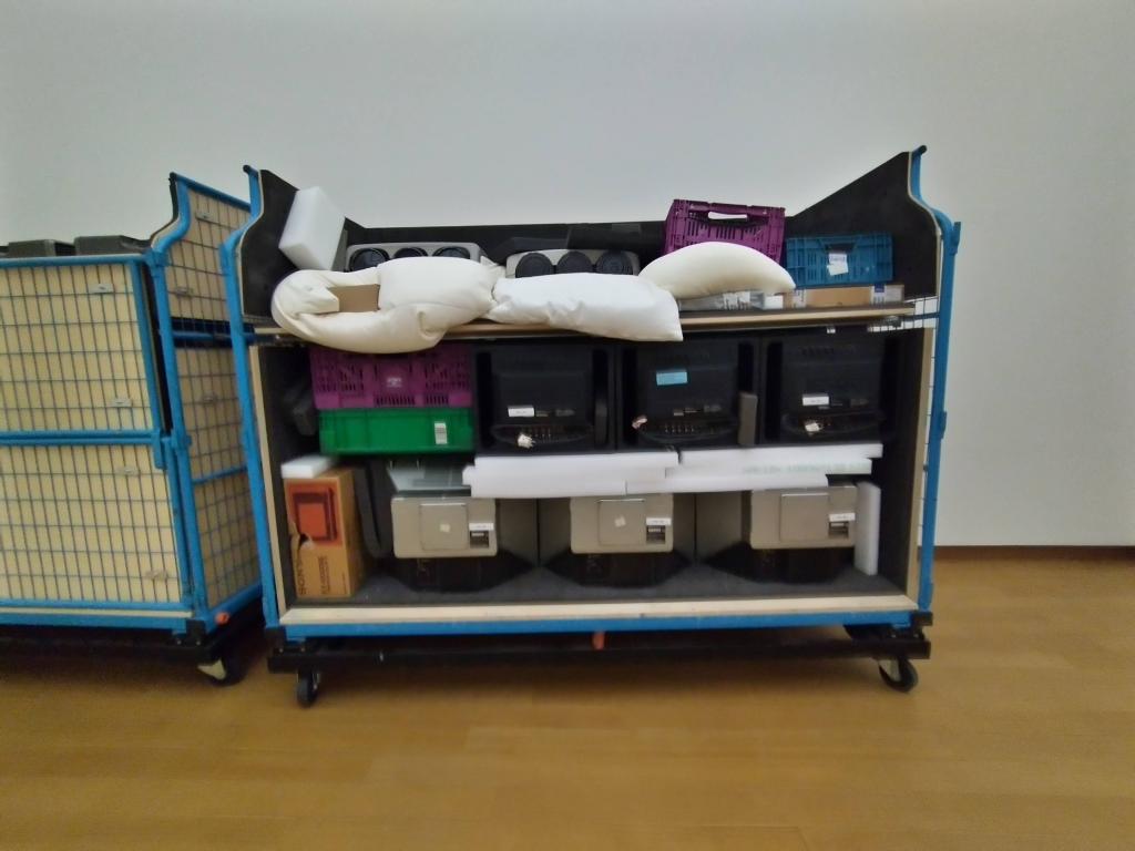 My task to empty out two crates filled with old (and heavy) CRT monitors, and to test them for signal input and possible flaws.