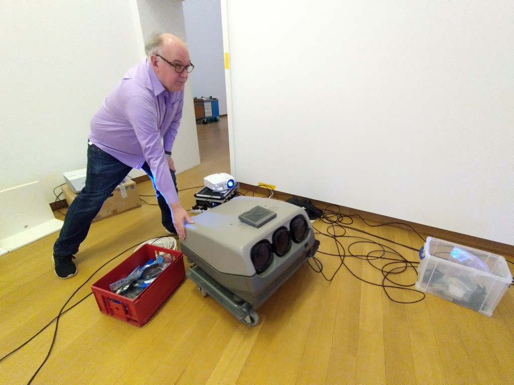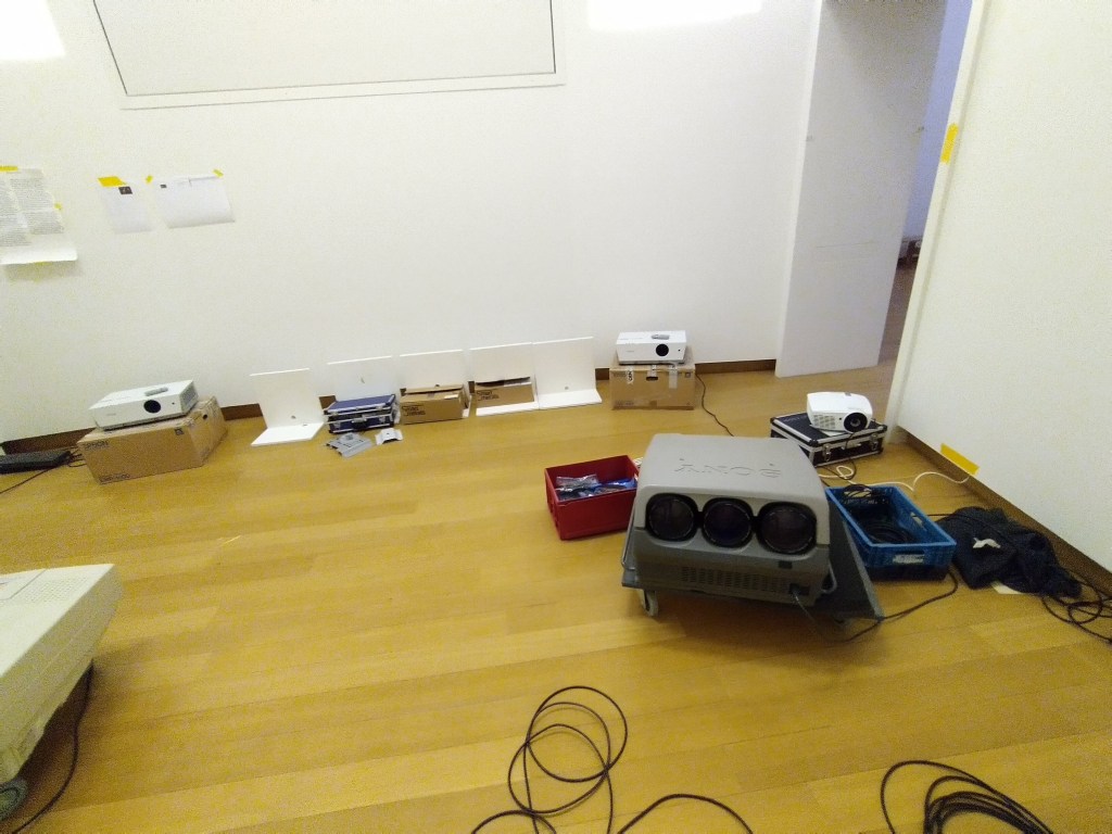 The AV equipment in this exhibition is old, which is fascinating as this is the first time for me to work professionally with crt monitors, televisions, old projectors and bnc cables. This is a good skillset as it seems to be a trending among the younger generation of artists.