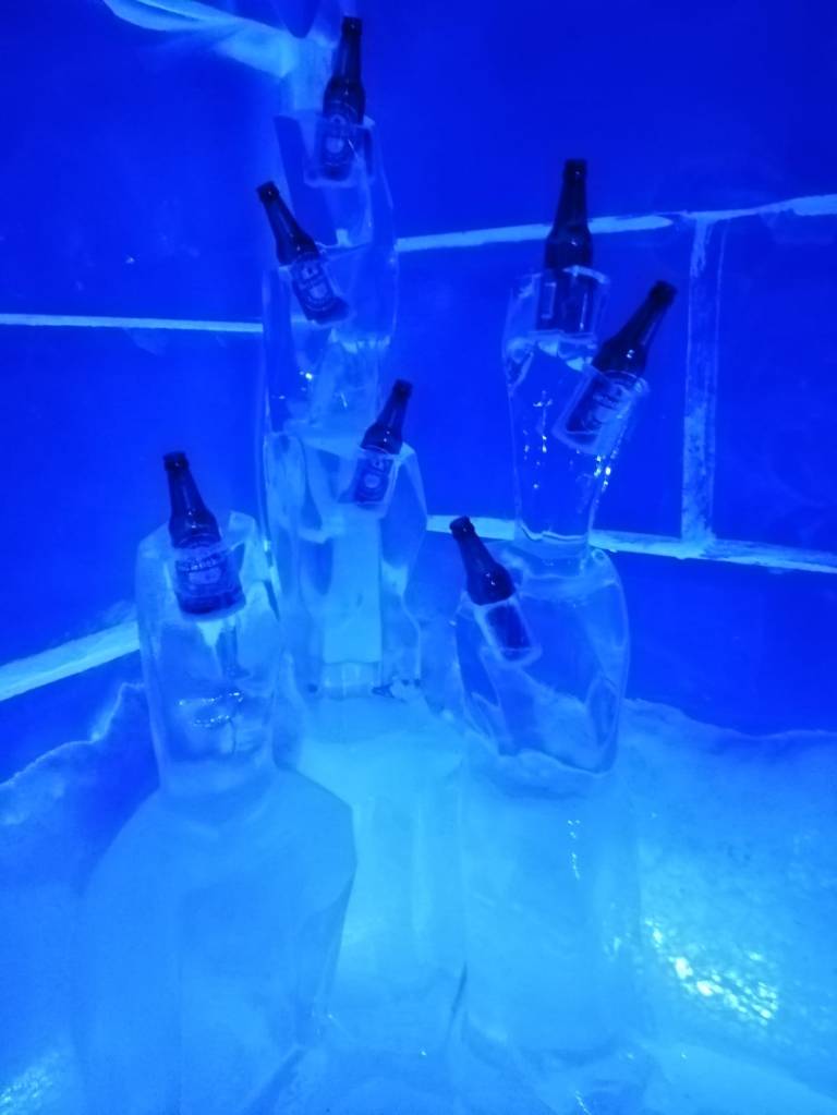 As we have Ice bar at the hotel in my daily job in Finland, I had to go and see how is ice bar in Berlin. Many big cities in Europe have ice bars and I am always eager to see them, to maybe get some new ideas or learn something. The ice bar in Berlin advertises itself as ”the biggest ice bar in the world” – I could maybe disagree on that one 🙂 The temperature was supposed to be around -10C degrees in this normal room where you had fans on to keep the cool area – as a girl from Lapland who is used to cold weathers, I would you guess the actual temperature to be around -3C. You get 3 coins when you enter with which you can purchase your drinks. You first go to a normal bar where you have 1 drink and after that you go to ice bar where you get 2 drinks. The concept for packaging the drinks was good and I got some ideas to bring home.