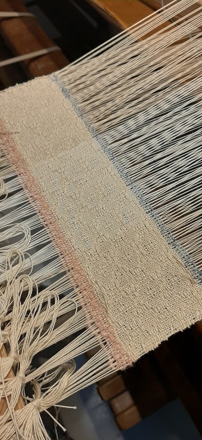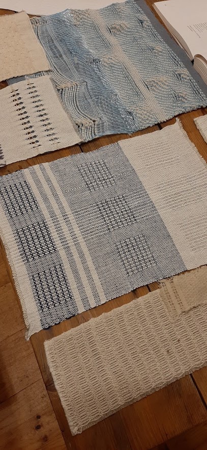 Viimeisellä viikolla verhojen kudontakurssi, erilaisia isoja sidoksia tulossa, sekä eri materiaalien ja värien vaikutusten testaamista.