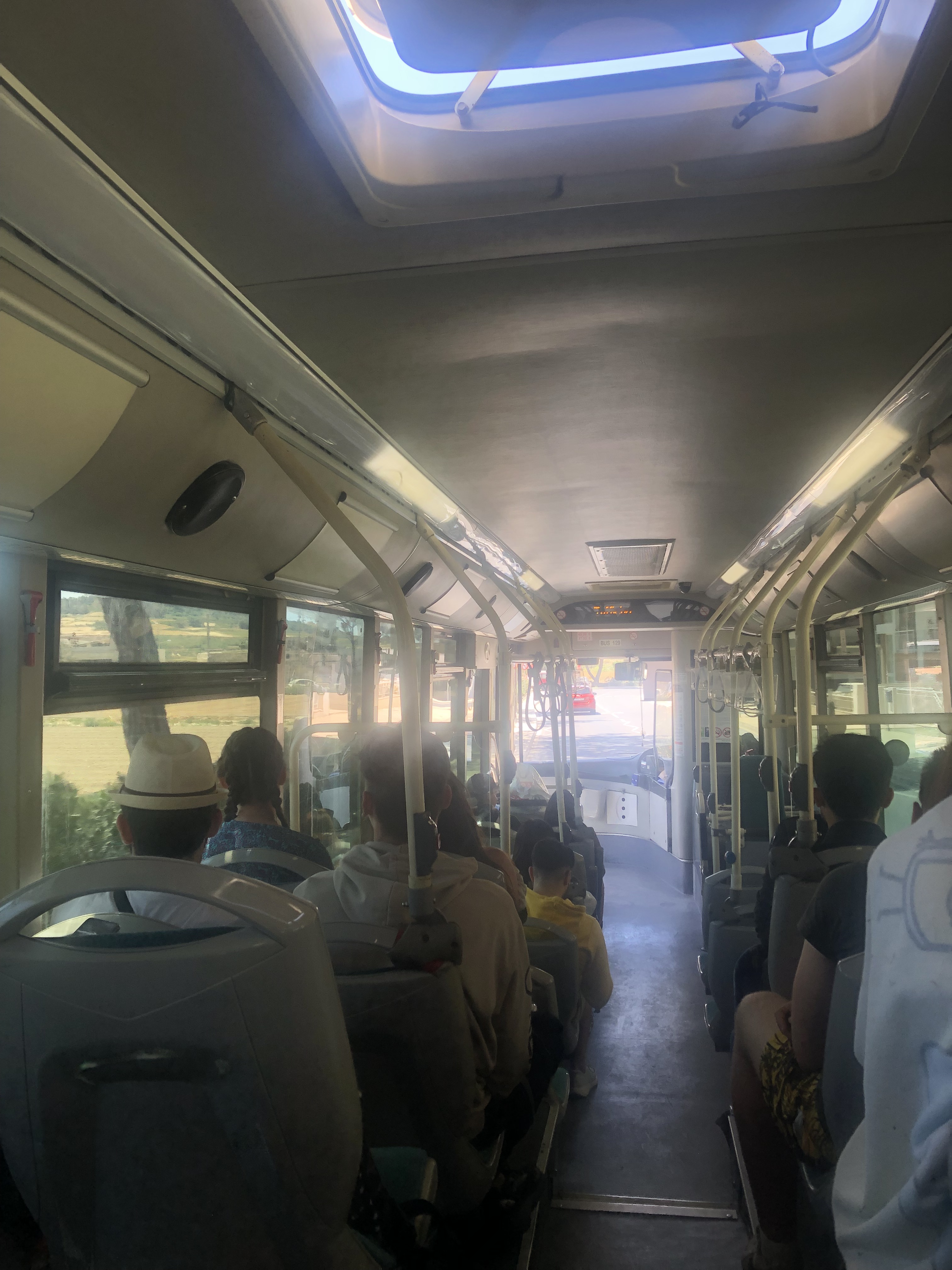 I use busses usually everyday and its actually only public transport here. I also sometimes use minibus or taxes to travel. There is a picture of bus when there was not many people but most of the times you have to stand in the bus because they are full but of course it depends of the timing. I think this is still the easiest and cheapest because it is just 1,50 euros.