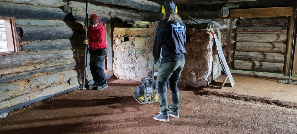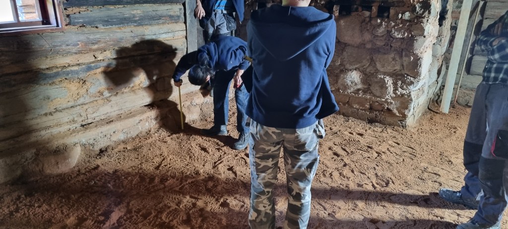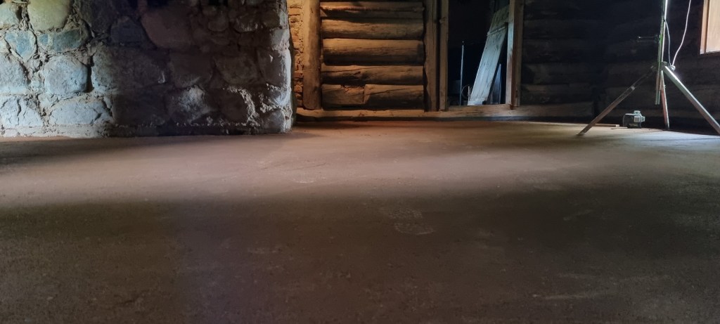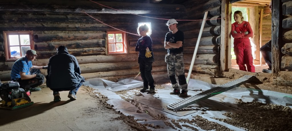 Opintomatkalaisten savilattianvalmistuskohde sijaitsi ulkoilmamuseoon 1980-luvulla siirretyssä, vuonna 1860 rakennetussa hirsitalossa, jossa oli kolme osaa: tupa, työhuone ja katettu kylmä osa. Lattian parissa työskenteli ma-ti puoli ryhmää opiskelijoista (7 henkilöä) ja to-pe toinen puoliryhmä (8 henkilöä).