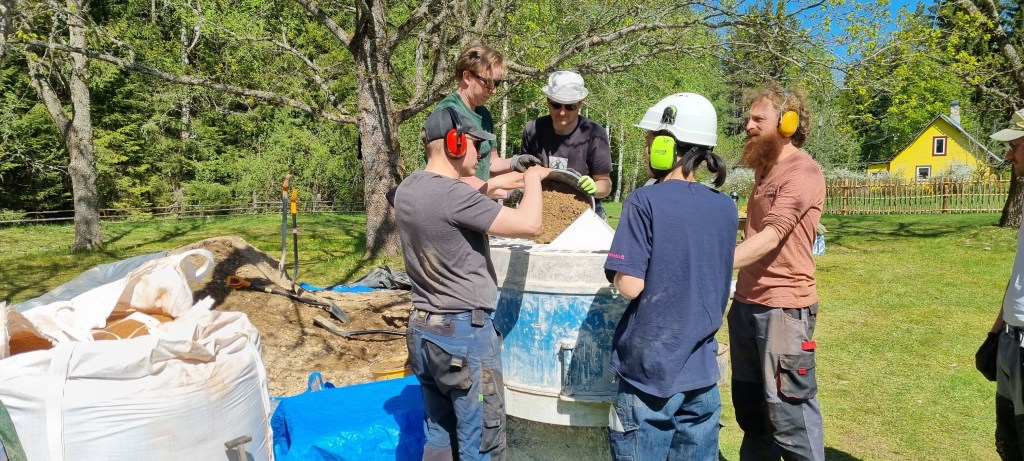 - 12,5 l savea + 5 sankollista 0-8 mm soraa (alkuviikosta tehtiin isompaa erää, mutta koska vaakasekoitin oli kovilla, erän kokoa vähennettiin ja tämä ilmoitettu resepti loppuviikon porukalla – suhteet kuitenkin samat sekä alkuviikosta, että loppuviikosta)