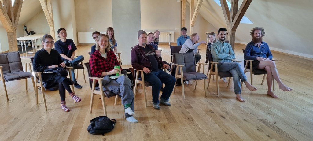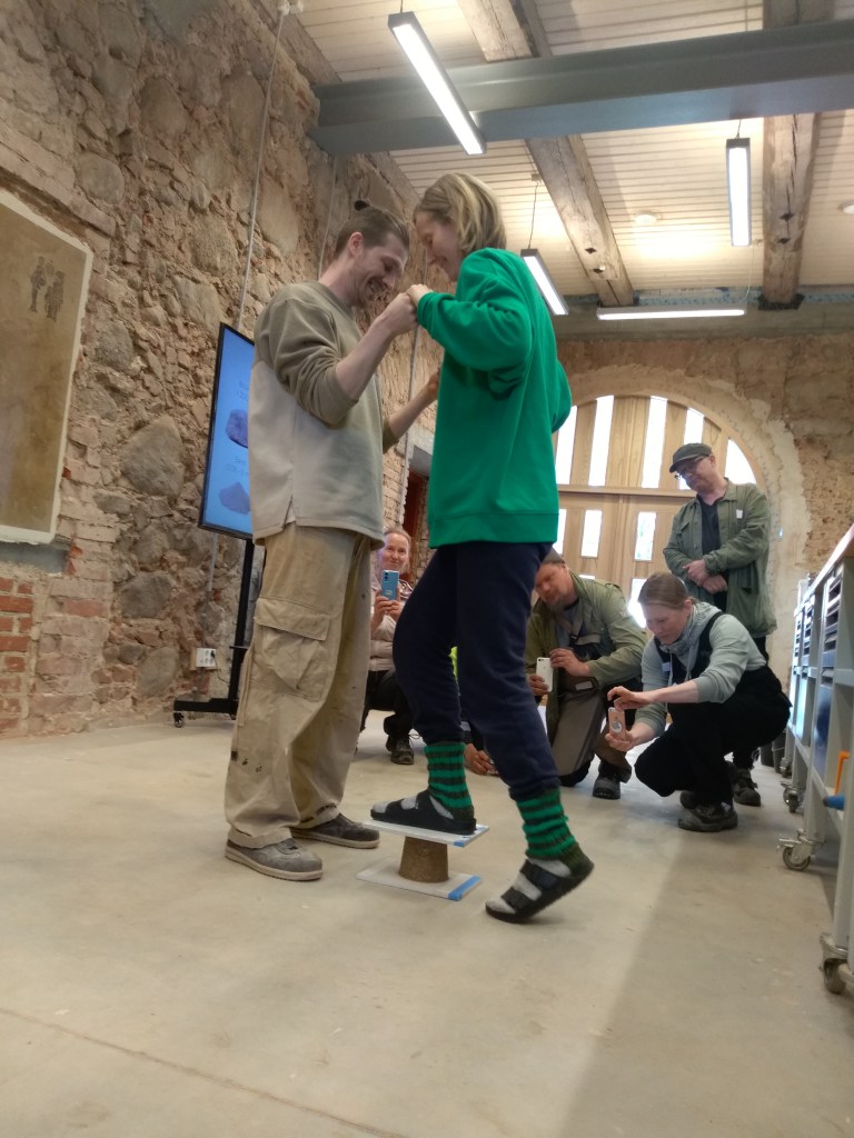Kurssin toisena päivänä perehdyttiin tarkemmin siihen, miten Moosten kartanon vanhasta rapistuneesta talli- ja vaunurakennuksesta syntyi koulutuskeskus. Uudistuneessa rakennuksessa toimii nyt ekologisen rakentamisen keskus Eestimaaehitus, joka siis järjestää koulutuksia ja opastaa sekä yksityisiä, että yrityksiä aiheeseen liittyen. Keskuksen tiloissa voi tehdä myös tutkimus- ja tuotekehitystyötä. Rakennuksessa sijaitsee lisäksi Saviukumajan toimisto- ja myymälä. Saviukumajan savi- ja kalkkituotteita käytetään paljon Suomessakin.