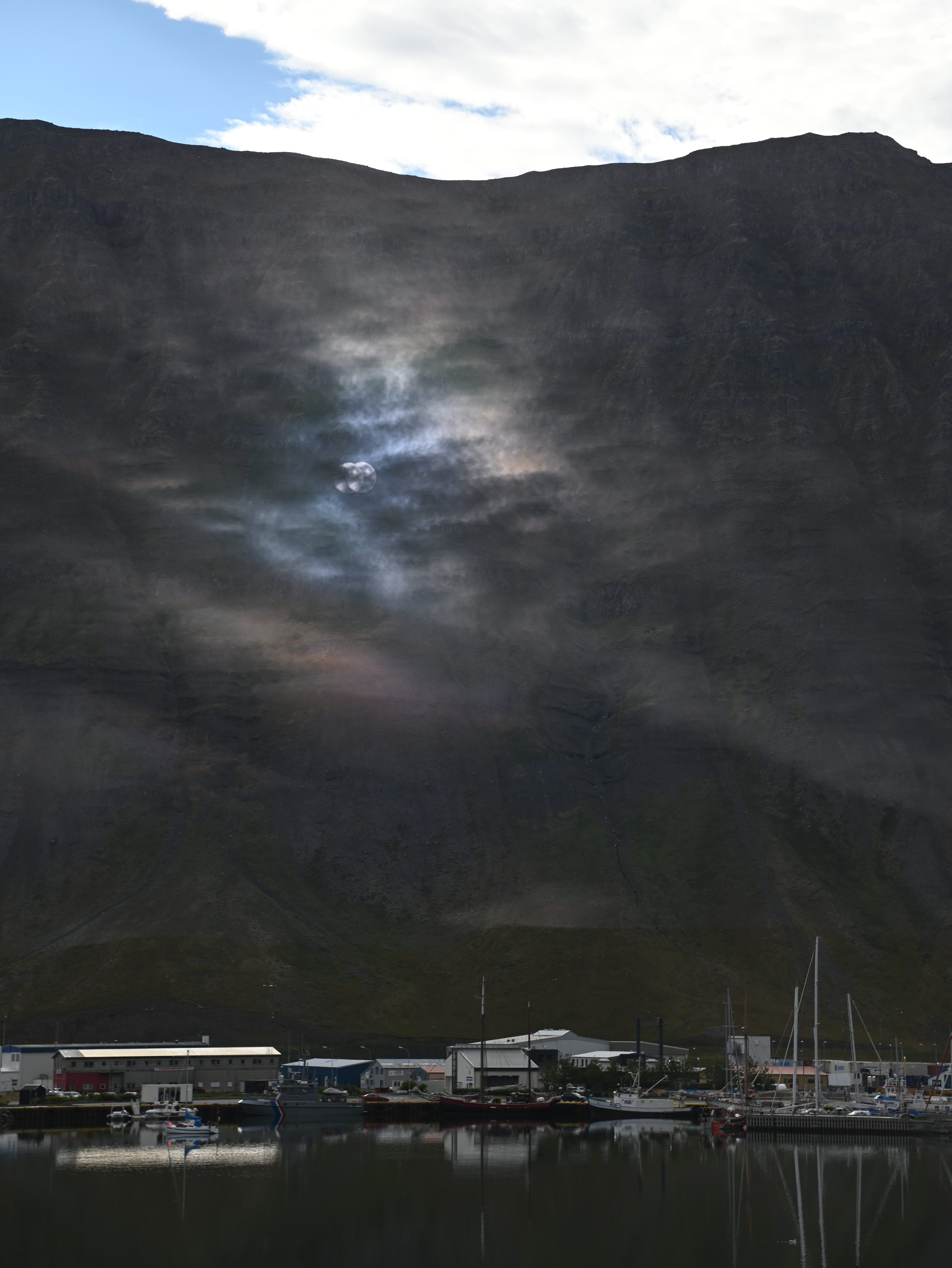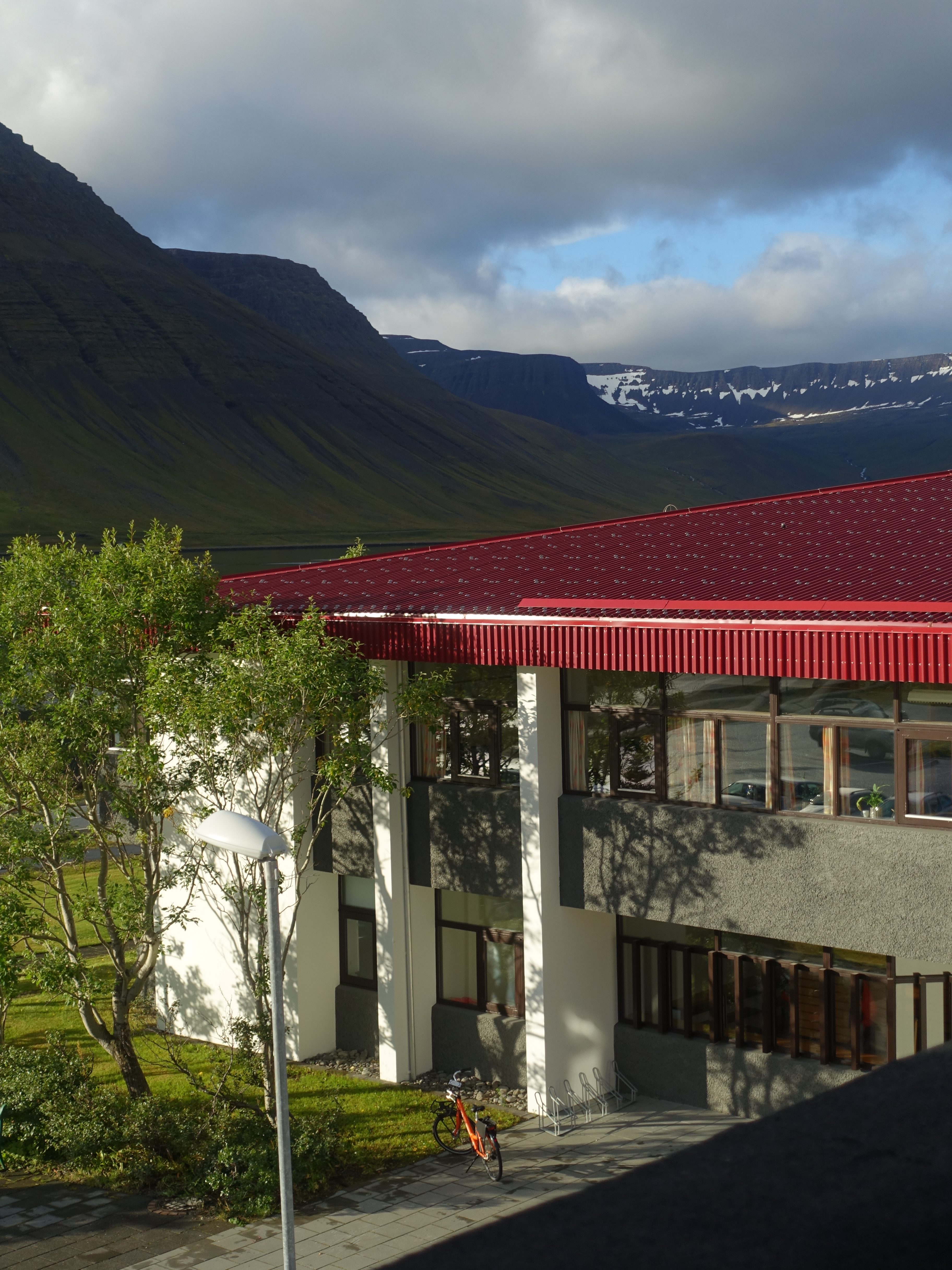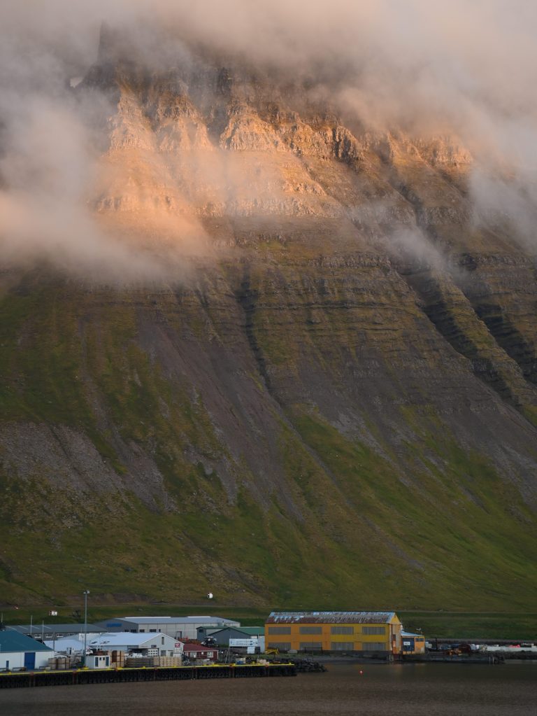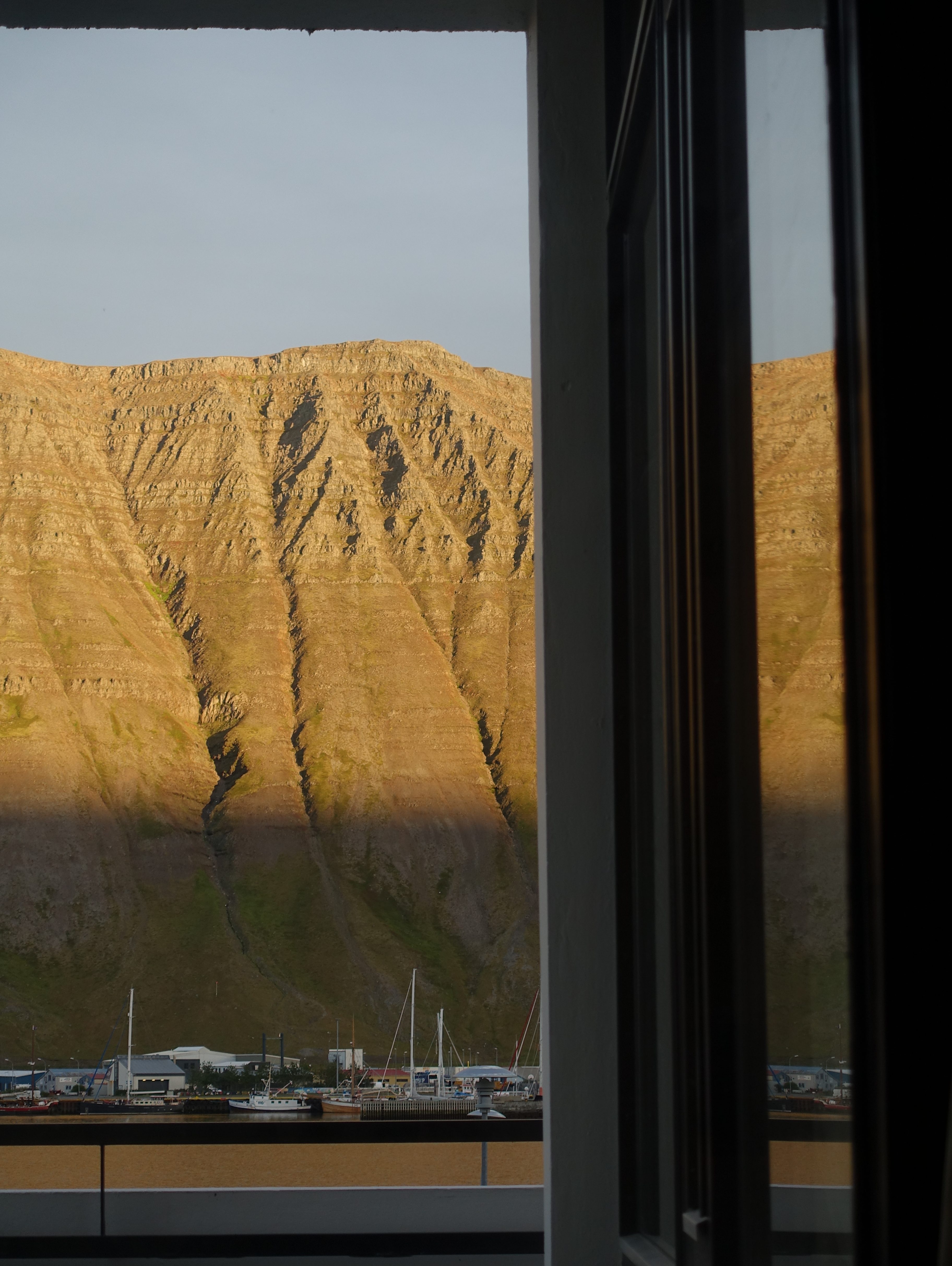 I am also grateful for be offered a corner room in a dormitory with a lot of windows from which I can see both Isafjördur bay, and the mountains surrounding it. Every day I photograph the views from my window, the changing clouds, the sun shifting along the slopes of the mountains, transforming nature from summer to autumn, and soon to winter. Almost every day brings different moods of photos, completely different arrangements of clouds, sun, and colors …