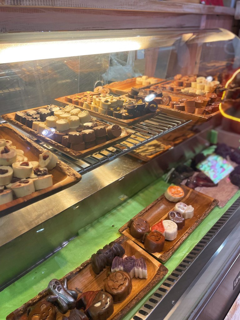 Astuessani suklaapuotiin sisälle, vastassani oli herkullinen suklaan tuoksu sekä erittäin ystävällinen henkilökunta. Pääsin tutustumaan suklaan valmistukseen sekä sain herkullisia suklaamaistiaisia. Suklaatehtaassa voi halutessaan valmistaa itse omia suklaatuotteita, joita voi ostaa samalla hinnalla kuin myymälästä. Suklaita sai koristella lukuisilla makuelämyksillä (pähkinät, kuivatut hedelmät ja marjat, mausteet jne.) Kolmessa suuressa kattilassa kiehui ihanaa sulaa suklaata (maitosuklaa, valkosuklaa, tummasuklaa)