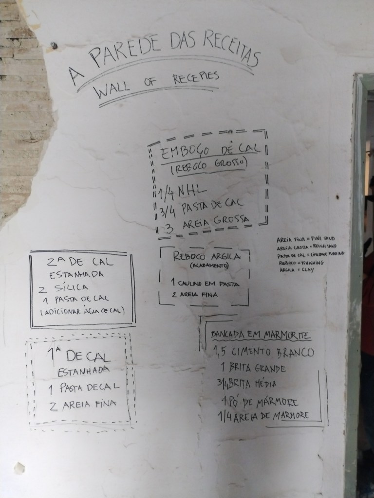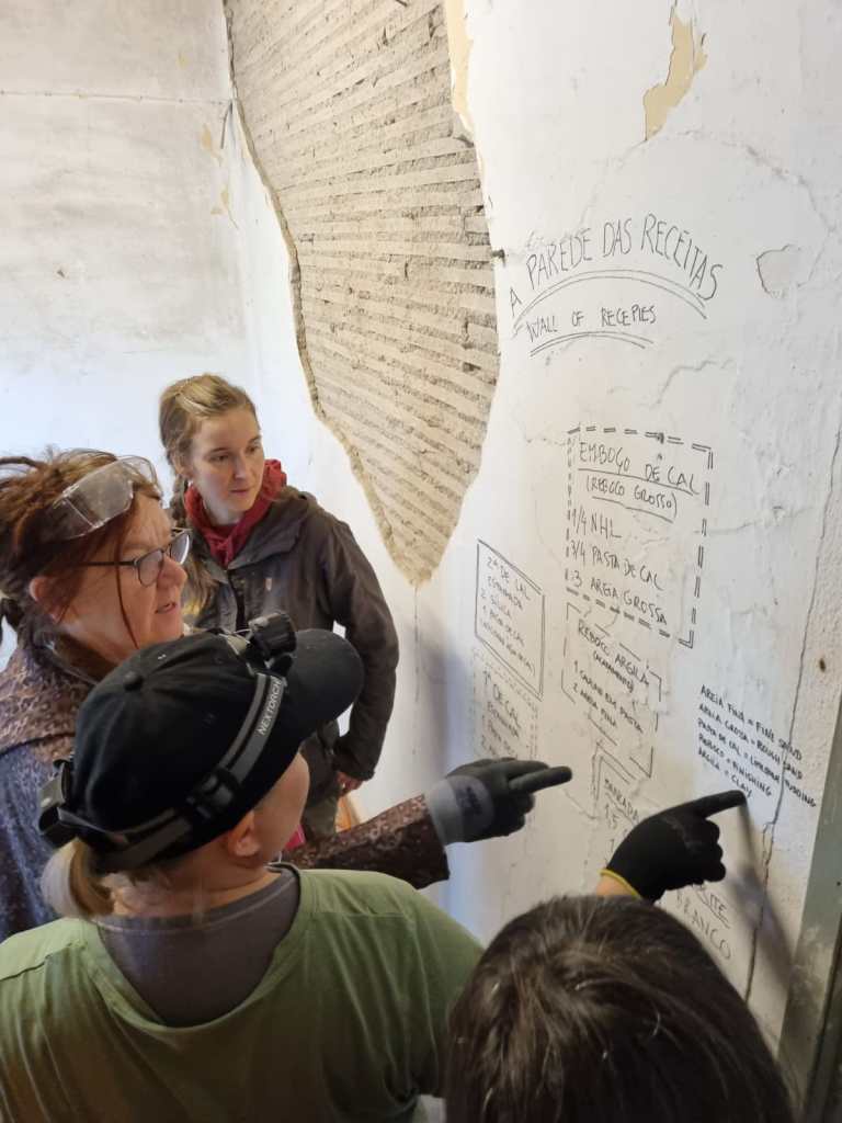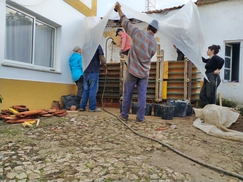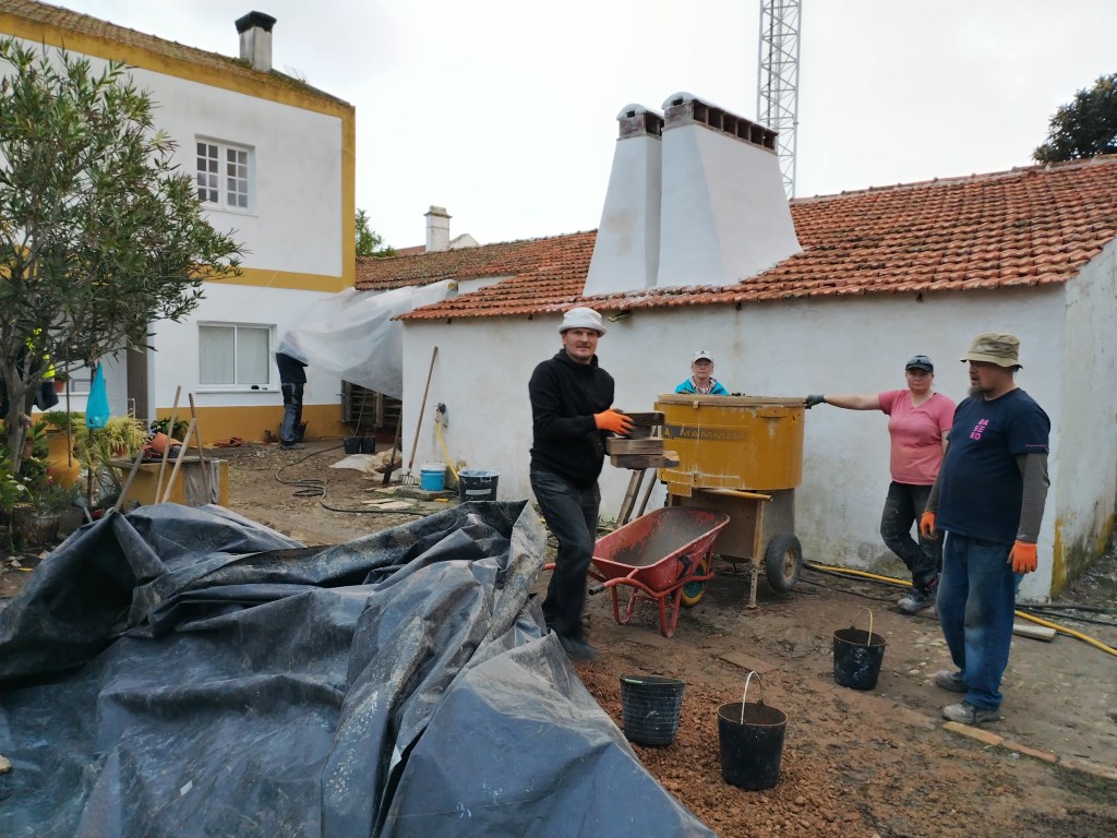 Päivän muita tehtäviä oli erilaisten laastien tekeminen. Kunnostettavan rakennuksen seinien rappaamista oli aloitettu jo aikaisemmin ja jatkoimme tätä muiden aloittamaa työtä. Tänään meitä oli Vascon lisäksi ohjaamassa Tânia. Hänellä on läheisessä kaupungissa arkkitehtitoimisto Cru Atelier, jonka suunnittelijoiden osaamisaalaa on mm. nimenomaan savi. Tuossa Montemor-o-Novo:n kaupungissa vierailimme myöhemmin. Cru Atelier:n nettisivut https://cruatelier.pt/