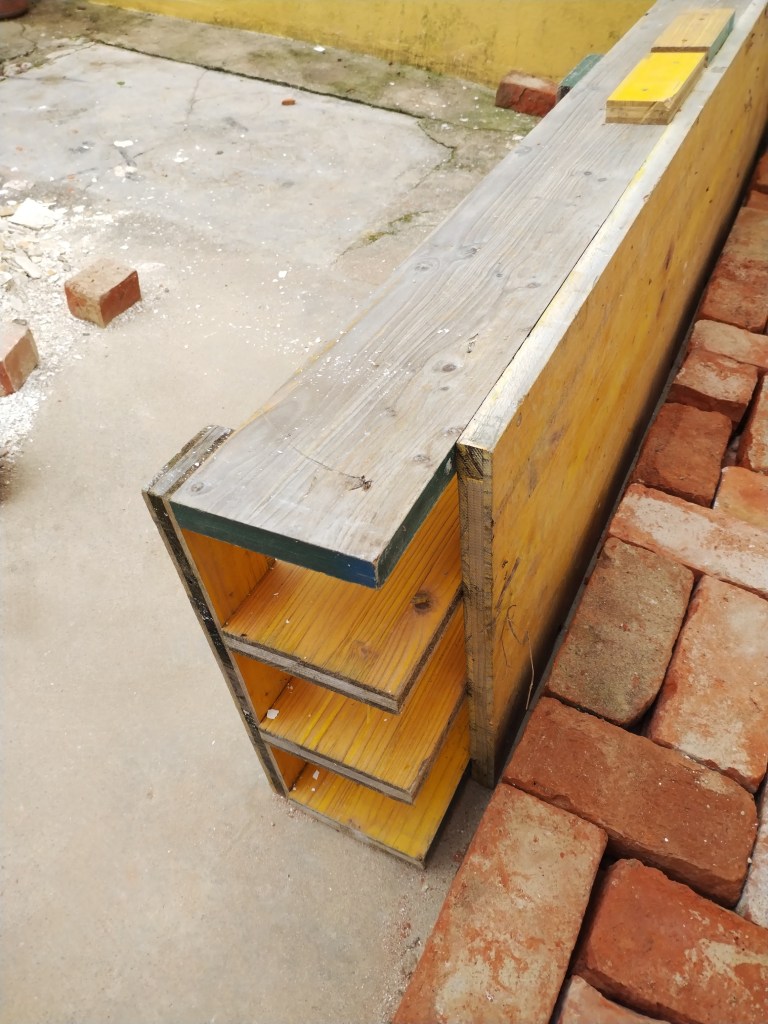 Eilisen tutustumiskierroksen jälkeen olimme saaneet tehtäväksi tehtäväksi pohtia ja päättää oviaukon toteutus ohueen tiiliseinään. Aamulla esiteltiin Vascolle pohdinnan tulos. Päädyttiin yksinkertaiseen toteutukseen, jotta se varmasti ehdittäisiin saada valmiiksi. Muottien ja työnaikaisten tukirakenteiden tekemiseenkin kun menee oma aikansa. Päädyttiin siis ratkaisuun tehdä tukitolpat ja pieni kaari, huomioiden käytettävissä olevat muottimateriaalit ja käytettävissä oleva aika. Osa porukasta alkoi valmistella tätä projektia.