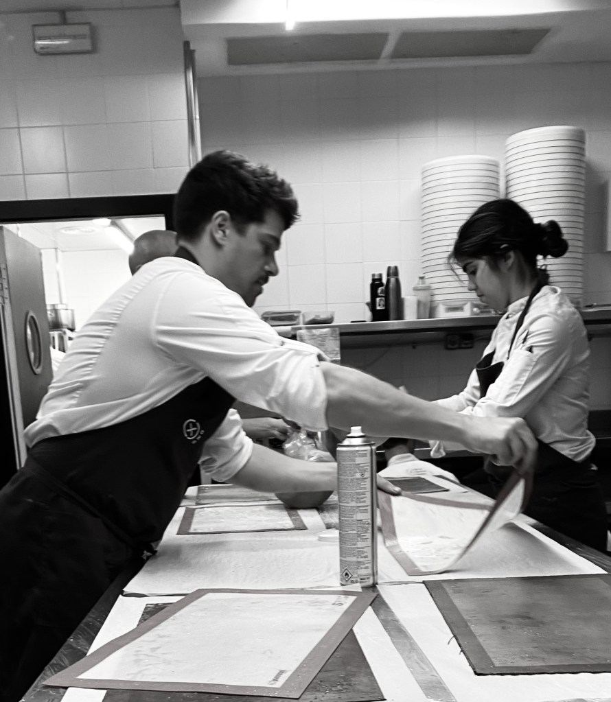 Disfrutar on ravintola, jossa vaatimustaso on korkea ja kilpailu kovaa. Harjoittelijoita on paljon, mikä tarkoittaa, että minun on oltava sitkeä, tehtävä työni hyvin ja oltava jatkuvasti valmis oppimaan ja parantamaan. Kuri on avainasemassa tässä ympäristössä menestymiseen.