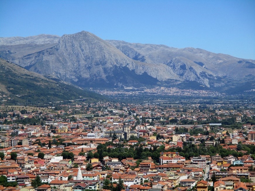Kaupunki, taloja, vuoristo ja taivas. Kuva: Wikipedia