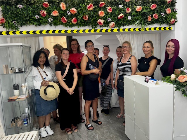 Aamupalan jälkeen osa lähti rannalle aamukävelylle ja osa lähti kiertämään läheistä kauppakeskusta. Puolen päivän aikaan meillä oli tapaaminen Dame Beautyssa. Paikan omistajat kertoivat yrittäjyydestä Espanjassa sekä heidän matkastaan yrittäjiksi ja tulevaisuuden haaveistaan. Tilat olivat kauniit ja vastaanotto oli lämmin. Jatkossa yhteistyötä tullaan kehittämään Dame Beautyn ja Rasekon kanssa.