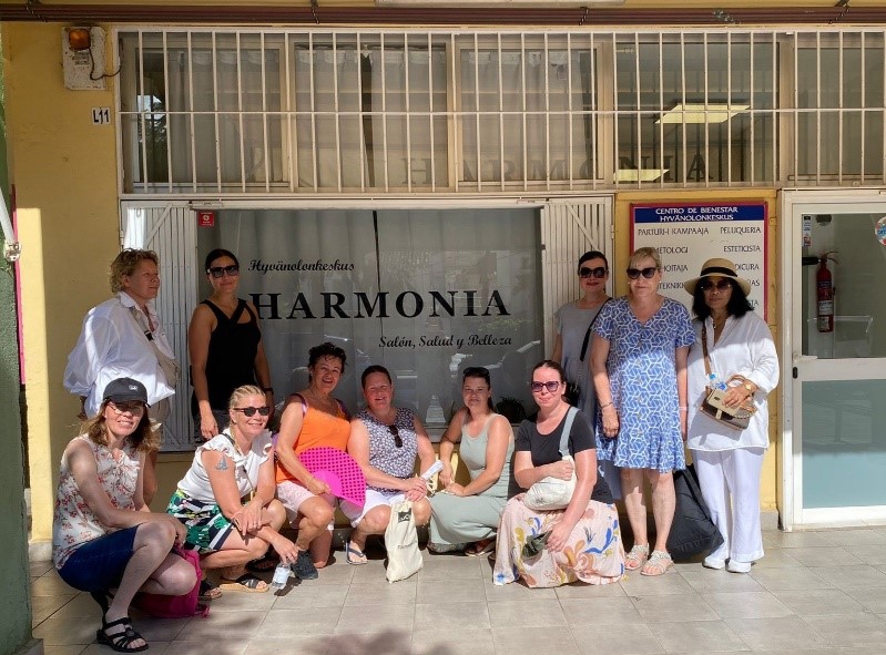 Aamupalan jälkeen innokas porukkamme suuntasi suomalaisyhteisössä olevaan hyvinvointikeskus Harmoniaan. Meidät otti vastaan ihana yrityksen omistaja Netta. Aurinkoista iloisuutta pursuava Netta kertoi meille kattavasti yrityksen toiminnasta ja palveluista. Iloksemme saimme tavata vielä jalkojenhoitaja AT opiskelijan, joka kertoi olevansa Vantaalta oppilaitos Careeriasta ja harjoittelujaksolla kuukauden verran.