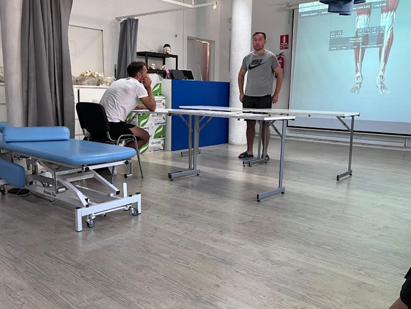 Nautittuamme hotellilla aamupalan suuntasimme ensimmäiseen päivän tutustumiskohteeseen Los Pacosin kaupungin osaan. Meidät otti vastaan Hierojaopiston (Sport Massage Institute of Finland) opettaja, osteopaatti Kari Kinnunen. Saimme kattavan luennon ja yhdessä herättelimme suunnitelmia myös mahdollisesta yhteistyöstä koulujen välillä. Tapaaminen koululla oli antoisa ja saimme aikaan mielenkiintoisia keskusteluja hieronnan ja jalkahoitojen yhteisistä näkökulmista.