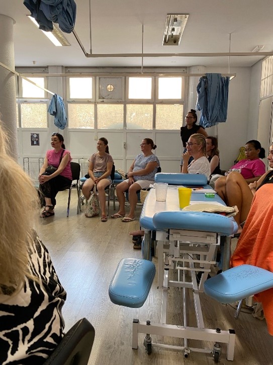 Nautimme kuumasta (+ 33c) aurinkoisesta päivästä ja saimme antoisia keskusteluja ja vertaistukea toisiltamme tulevasta uudesta ammatistamme. Sofia opistolle olimme yhteistyössä tehneet Suomessa jo kattavan esitelmän jalkojenhoidosta. Sitä oli harjoiteltu täällä Espanjan lämmössä jo etukäteen. Luento oli tarkoitettu alkavaksi klo 15.00, mutta valitettavasti luento harmiksemme peruuntui osallistujien vähyyden vuoksi. Hyvä harjoitus kuitenkin tulevaisuutta ajatellen meille kullekin. Pääsimme kuitenkin Miguelin johdolla tutustuman Sofia opiston toimintaan ja tiloihin. Päivä oli yhdestä takaiskusta huolimatta kiinnostava ja antoisa.
