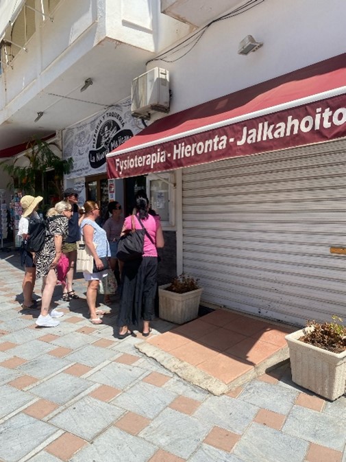 Matkaan Fuengirolaan lähti kaksi jalkojenhoitaja ryhmää sekä kaksi jalkojenhoitotyön opettajaa. Osa opiskelijoista valmistui keväällä 2024 ja osa valmistuu joulukuussa 2024.
