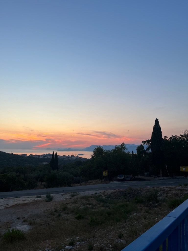 Lähdin työharjoitteluun Kroatian Dubrovnikiin 13.8 yhdessä Elenan kanssa. Tänne matkustaminen ei ollut stressaavaa, sillä lyhyt lento (n 2,5h) meni nukkuessa tyhjällä penkkirivillä. Mietittiin majoitukseen siirtymistä bussilla, mutta Uber oli helpompi ja nopeampi, kolmelle hengelle tuli myös halvemmaksi yhdessä. Matka kesti noin 20 minuuttia, jossa pysähdyimme myös ottamaan kuvia upeasta auringonlaskusta.