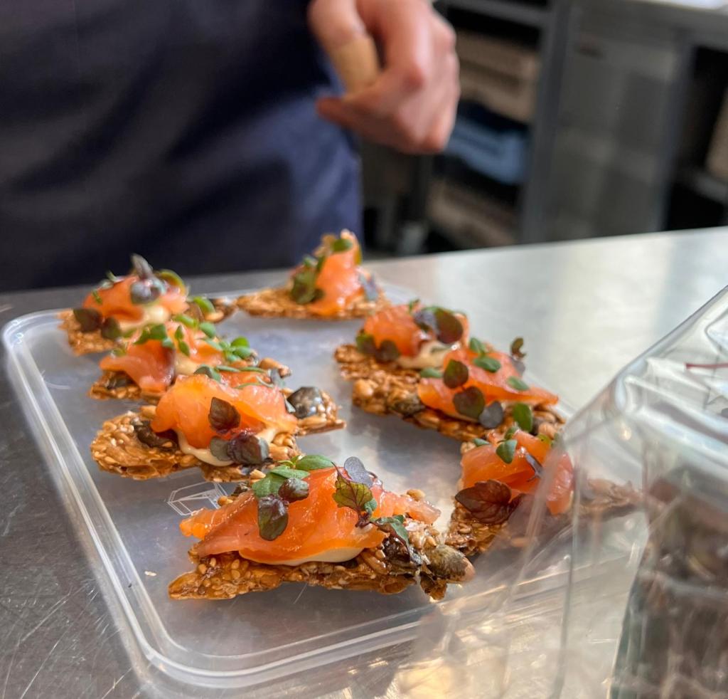 Ensimmäisestä tilaisuudesta selvisimme keittiön puolella hienosti. Maanantain esivalmistelut auttoivat päivän sujuvuutta ja tunnelma keittiössä oli rauhallinen ja motivoitunut.