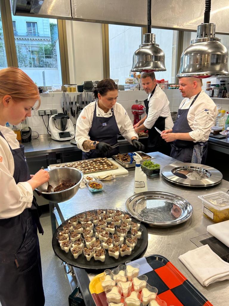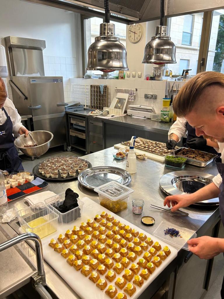 Ensimmäinen tilaisuuksista on nyt ohi ja siitä on selvitty loistavasti. On upeaa, kuinka hyvin tiimimme pystyy toimimaan yhdessä. Seuraavaksi vuorossa cocktail tilaisuus, johon tulee tarjolle 3 makeaa ja 5 suolaista sormisyötävää meillä tulee vieraita tilaisuuteen noin 80 henkeä, joten työtä tulee riittämään kaikille. Sen jälkeen vierailemme yhteiskoulussamme Ceproc:ssa ja perjantaina viimeisenä tilaisuutena on suunnittelemamme lounas buffet.