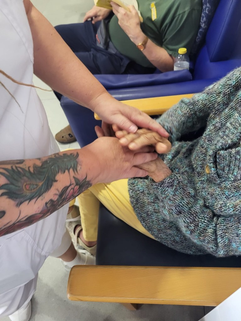 Sosiaalisuus ja yhteisöllisyys olivat vahvasti läsnä hoivakodin arjessa espanjalaisessa kulttuurissa – niin asukkaiden ja heidän läheistensä kuin myös henkilökunnan kesken. Positiivinen työilmapiiri syntyi arvostavista kohtaamisista, kehuista, kiitoksista ja empaattisuudesta. Työpäivään kuului halauksia, poskisuudelmia ja cariño (kultaseni) -puhetta, mikä loi lämpimän ja hyvän ilmapiirin.