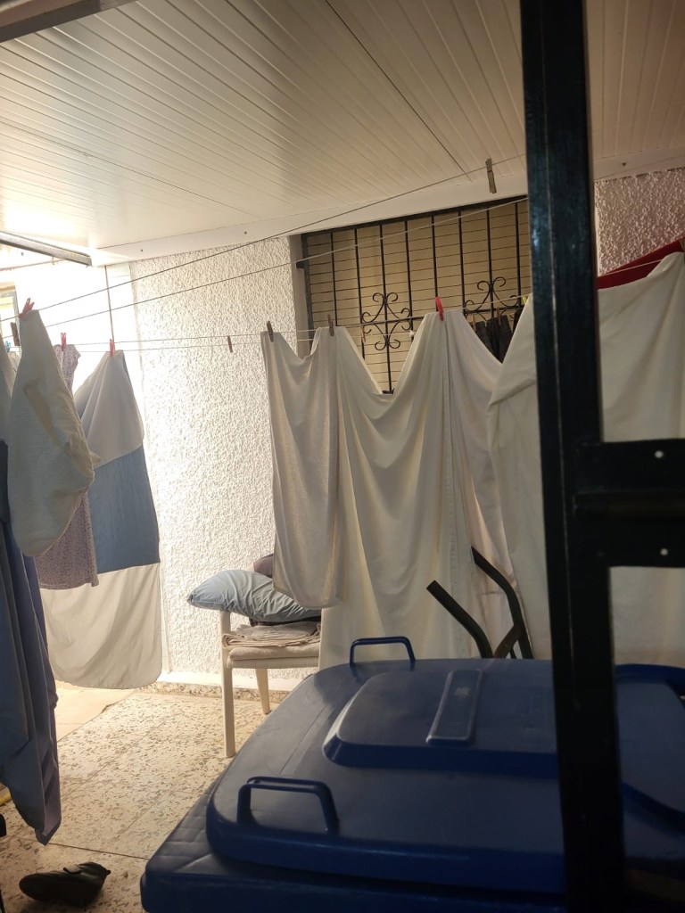 Energiataloudellisesti hyvää oli myös se, että valaisimia sammuteltiin asukkaiden huoneista silloin, kun niissä ei vietetty aikaa. Toisaalta talven tullen huoneissa oli melkoisen viileää, ja joihinkin huoneisiin olisi mielestäni voinut hankkia lisälämmittimiä, sillä aamuisin ulkolämpötila saattoi olla vain +6 astetta. Aamuisten hoitotoimenpiteiden aikana asukkaita peiteltiin peitoilla, sillä huoneiden ikkunat ovat usein Espanjassa yksinkertaiset ja melko vetoiset. Ilmalämpöpumppuja ei ollut huoneissa, ainoastaan kattotuulettimet pyörivät yhteisissä tiloissa. Pyykkikoneet myös pyörivät ahkerasti ulkona, katoksessa sijaitsevassa pyykkituvassa. Pyykit kuivatettiin perinteisillä pyykkinaruilla, ja kesällä pyykit kuivuvat kuumuudessa todella nopeasti. Talvella hitaammin sillä meren läheisyys ja sen tuoma ilmankosteus hidastaa kuivumisprosessia. Energiaa siis säästyi kuin kuivausrumpuja ei ollut käytössä.