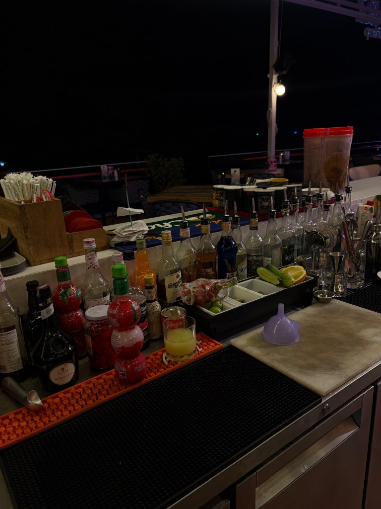 Työtehtäviini kuului perus baarityöt: juomien valmistusta, lasien ja astioiden tiskausta, baarin siisteyden ylläpitoa, asiakkaiden palvelemista sekä uusien cocktail- ja mocktail-reseptien harjoittelua. Viimeisen kuukauden aikana siirryin kahdeksi viikoksi rooftop-baarin iltavuoroihin, jossa asiakkaita oli paljon enemmän ja tilauksia tuli monenlaisista drinkeistä. Työ oli vilkkaampaa ja tarkempaa kuin ravintolassa, mutta tykkäsin todella työskennellä ulkoilmassa ja nähdä upea auringonlasku joka ilta. Rooftop-baarissa työskentely oli myös sosiaalisesti mukavaa, työntekijät olivat huumorintajuisia ja ilmapiiri rennompi, vaikka kiirettä riitti. Vuorot alkoivat klo 15 ja loppuivat klo 24.