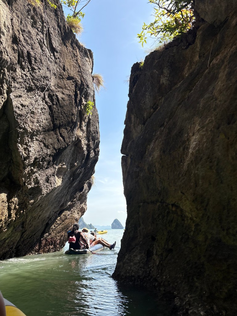 Suosikkiretkiäni olivat saarikierrokset, kuten Phi Phi ja James Bond -saari. Phi Phi -retki oli hektinen ja täynnä ihmisiä, mutta maisemat ja paikat, joissa vierailimme, olivat niin upeita, että kiire ei haitannut. James Bond -saari oli rauhallisempi ja vähemmän turistien täyttämä, mikä teki retkestä hieman rentouttavamman. Viikonloppuisin ehdimme myös kokeilla ziplineä viidakon yli, kierrellä Patong Beachin vilkasta baarikatua ja vierailla Bangkokissa, joka oli ensimmäinen kokemus niin suuressa kaupungissa, liikenne, rakennukset ja tunnelma olivat täysin erilaisia kuin Suomessa.