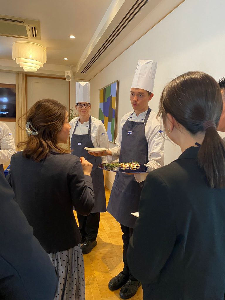 Tilaisuuden edetessä huomasimme, että alkujännitys oli kadonnut lähes kokonaan. Sen tilalle tuli varmuus ja hyvä fiilis siitä, että kaikki sujui niin kuin pitikin. Ensimmäinen lounastilaisuus suurlähetystössä Japanissa oli meille tärkeä kokemus. Tilaisuus opetti paljon, mutta ennen kaikkea se jäi mieleen onnistuneena ja hienona hetkenä.