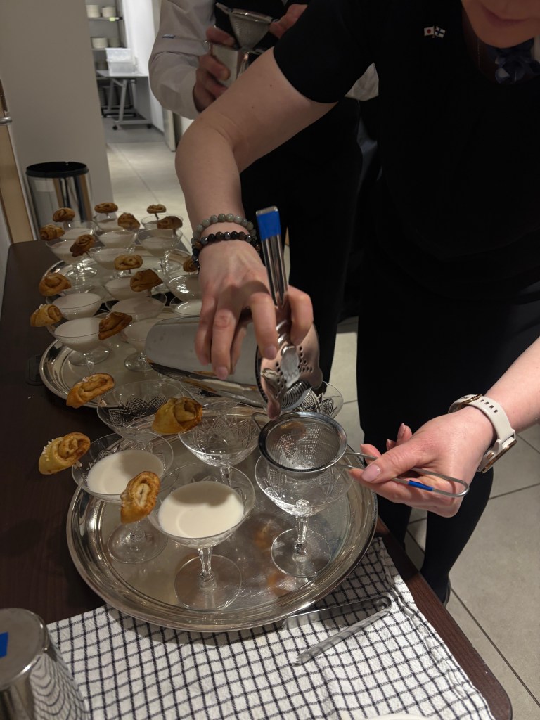 Kun vieraat saapuivat, alkujännitys oli korkeimmillaan. Kolmen tunnin aikana jokainen ruokalaji ja juoma saatiin sujuvasti tarjoiltua, ja tunnelma salissa pysyi lämpimänä ja innostuneena. Tilaisuuden edetessä oli mahtavaa nähdä, kuinka jokainen pieni yksityiskohta, ruoka, juoma, tarjoilu, onnistui täydellisesti.